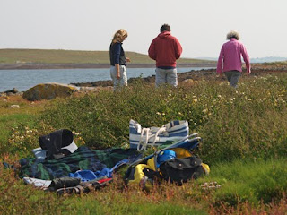 As this is probably the last day we can expect to enjoy the benefits of that massive high over the British Isles, we packed a picnic and took our visitors to a neighbouring island for lunch, a walk and some seal-spotting on the way back.